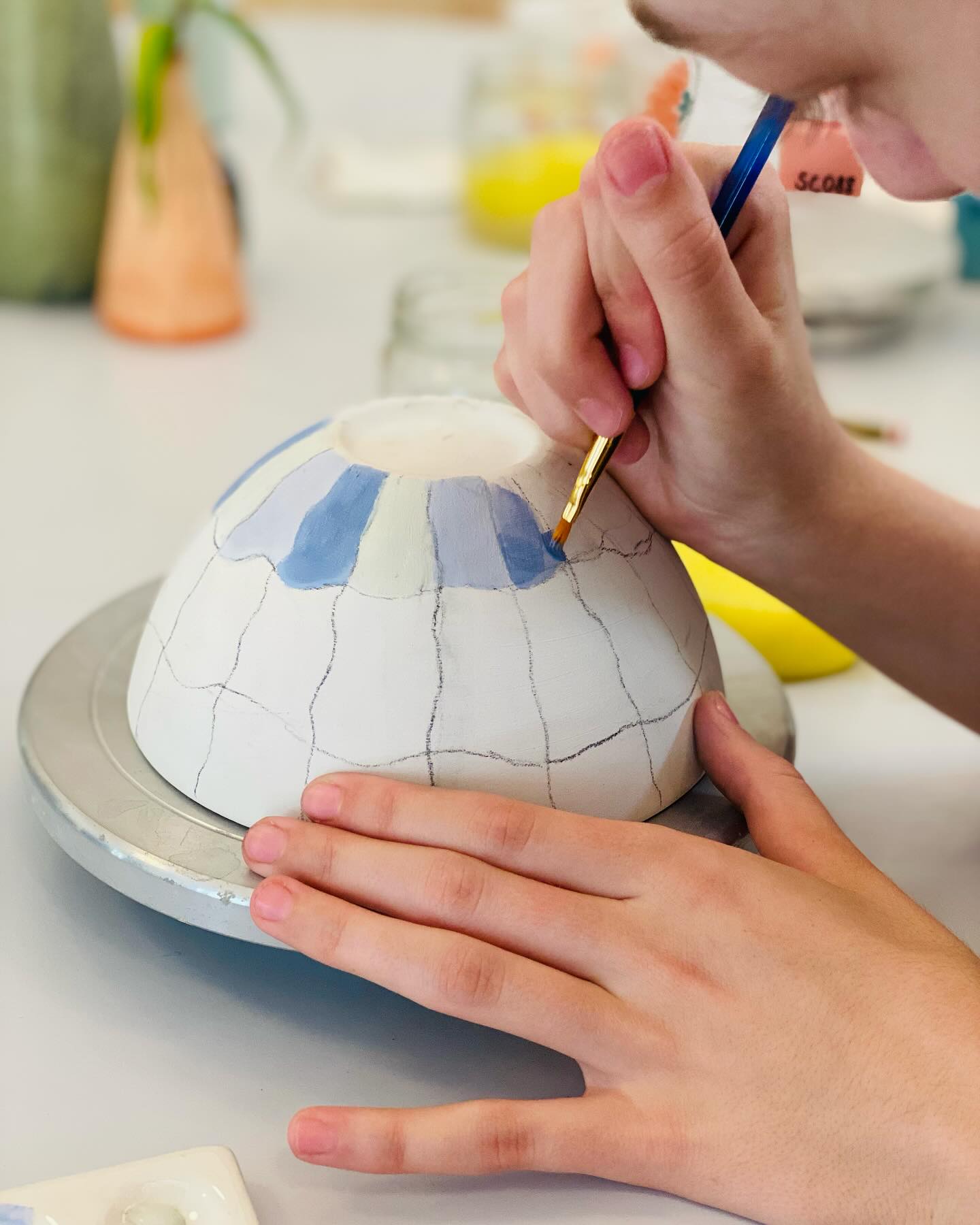 Derefter er der fri leg med penslerne. Når du kaster dig ud i at dekorere din keramik.